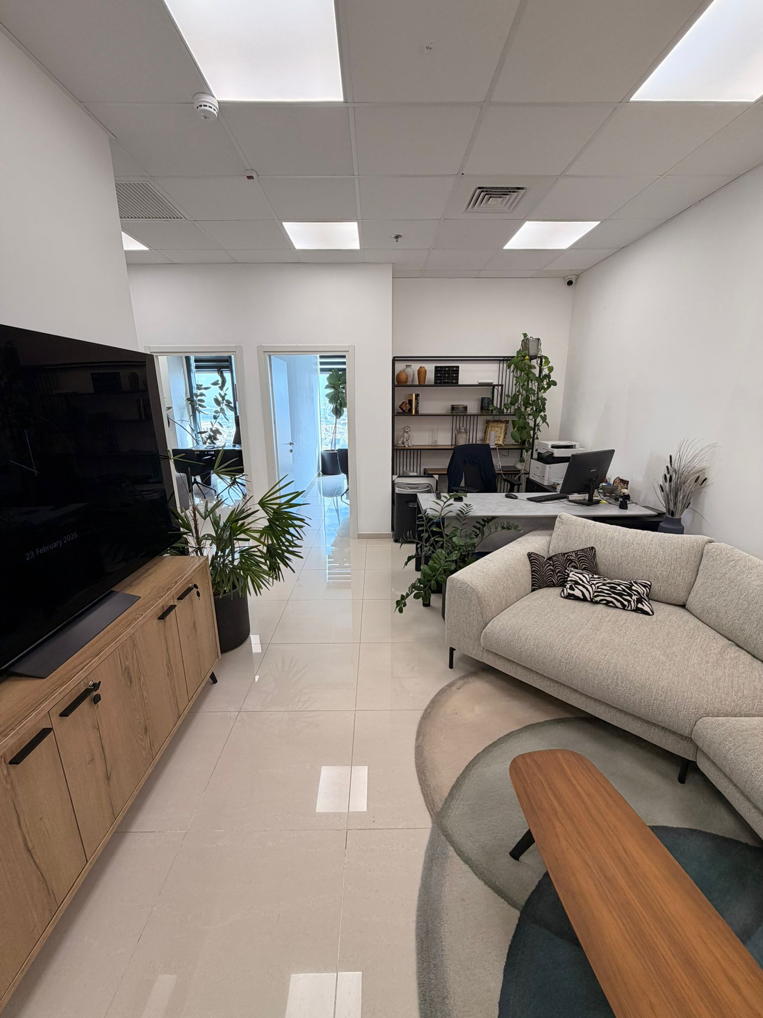 משרד של 142 מטר עם 5 חדרים קבלה מטבח ומרפסת נעימה.
